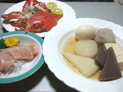 昼は暑いと文句を言ったら、無茶寒くなりました。突然の大雨が降り、強風が・・・・ベランダに干している洗濯物は・・・飛んではいませんでした。濡れているんだろうか?微妙です。夜だから湿っているような。洗い直しかな?面倒だけど、雨に濡れてたら臭くなるし・・・うーん。どうしよう。今日の晩ご飯は、寒いのでおでん。最初は、市販のものを買おうと思ったけど、イマイチ美味しくないし。特に練り物が。8時過ぎに戻って作りました。味は染みてないでしょうね。まあ、おでん味噌や辛子で食べるからいいか。他には、渡り蟹の塩茹で。ブリの刺身。
