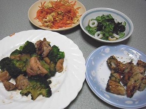 ブログを一日サボってしまった。修理に出していた奥さんのパソコンが戻ってきたので、実家に帰ってさあ更新と思ったら・・二女がパソコン前に陣取り、ニコ動を見ている。「動かんで!」と宣言。修理中の二女のPCが戻るまで、実家でのパソコンは出来ないか(今は居ないので隙をみて)ということで、昨日アップする予定だった写真。一昨日の晩ご飯。鶏肉とブロッコリーの炒め物がメイン 塩麹に漬けておいた鶏もも肉を塩麹を洗ってから一口大に切り、フライパンで炒め取り出す。 ブロッコリーは適当な大きさに切り、洗って水気のついたまま蓋をして炒める。(蒸し焼き状) 鶏肉を戻して、オイスターソースを少しと塩、胡椒で味を調える。竹輪の青のり炒め胡瓜の酢の物(胡瓜、竹輪、わかめ)人参しりしり弁当は、鶏の生姜焼きがメインかな?鶏生姜焼き(塩麹に漬けておいた鶏肉を炒めて、生姜+醤油、味醂、砂糖のたれで味付け)だし巻き卵竹輪のつめもの(塩麹につけた胡瓜、人参)菜の花のからし醤油和え人参しりしり焼き鮭、トマト ポチッとお願いします。 昨日のニュースで一番驚いたのは、やはり山口美江さんの死亡記事でしょうか。「しば漬け食べたい」で大ブレークしましたね。私のブログにも柴漬けを作った際に、「懐かしいなあ」と話題にしたこともあります。51歳はあまりにも早すぎる。ご冥福をお祈りいたします。