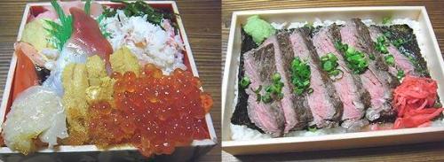 昨日は、奥さんに誘われて三越の北海道物産展に行ってきました。先日、奥さんは実家母と行って楽しかったので、もう一度行きたいとのリクエストです。「ほら、試食もいっぱい出来るし楽しいよ」とのこと。夕食に食べたのは、私が1,050円の海鮮散らし。奥さんの超おすすめです。で、奥さんは「私はそれは前に食べたから違うものにするわ・・」と言って、買ったのがステーキ弁当1,400円・・・・何かが違うぞ!?* ちなみに、海鮮寿司のイクラは先日のお土産のイクラを増量しています。試食メインで、弁当だけを買う予定だったけど・・・チーズケーキ生チョコ早煮昆布、がごめ昆布を買いました。がごめ昆布1袋630円だけのつもりが、「二つなら1000円にする」と言われて迷わず2つ。同じ売り場の早煮昆布を試食して、勢いで買ってしまう。まあ、物産展はスーパーより割高だと思うけど、プチ旅行気分になれるからいいか。スーパーとの値段差を考える人は、そもそも物産展に行かないだろうし・・・と物産展商法にはまっている我が夫婦でした。 ポチッとお願いします。 並んでいて年配の夫婦としゃべっていました。奥さんから「知り合い?」私 「全く知らない。悩んでいるみたいだから 『結構量もありますよ。美味しかったし』とアドバイスをしていただけ」 「俺から話しかけた赤の他人」奥さん「もう少しでお辞儀して挨拶するところだったやんか」人見知りはするけど、全くの赤の他人に話しかけることもたまにあります。変?今日も飲み会。酔わずに戻ってきたら皆さんのところにお邪魔します。って、そんな飲み会ないか・・・・・( ̄。 ̄ )ボソ...