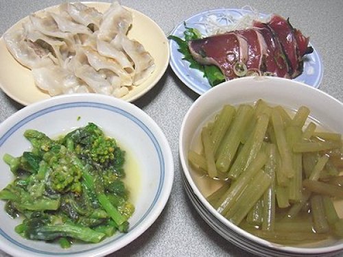 花粉が飛んでいます。花粉症が酷くなっています。朝、5時半に目覚めたあと、二度寝したら「ゴー」という自分自身のいびきで目覚めた。鼻が詰まっていていびきがでたみたい。その後、猛烈な目のかゆみ・・・鏡で見たら真っ赤なうさぎの目。ということで、昨日の夜は花粉症に効果があるという蕗の煮物がメイン。蕗の煮物 白だしと味醂で薄味にして煮汁も飲みます。菜花の酢味噌和え餃子(市販) 安かったけど、やはり茹でタイプじゃなくて、生タイプの方が美味しいですね。失敗。鰹のたたき花粉症がよくならないのは、アルコールが原因か。分かってはいるんですけどね。蕗と花粉症について 蕗の中にはフキノール酸というのがあってこれが花粉症の原因のヒスタミンに効くらしい。 茹でた時のアクの中に含まれているので、茹で汁を味噌汁にして飲むのがいいらしい。 苦そうですが、良薬口に苦しの気持ちで飲むべきなのかな。 でも、一つ問題が。 ほうれん草と同じように野草には、シュウ酸が含まれており、結石の原因にもなります。いいことばかりはないんですね。でも、蕗を試したい。 ポチッとお願いします。 で、今日は送別会第1弾花粉症に悪い飲み会です。あんこ亭が今から開店です ┐(-。ー;)┌ヤレヤレ (笑)