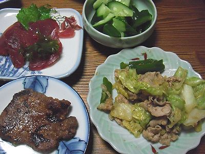 実家での晩ご飯。回鍋肉がメインです。色が薄いけどちゃんと味はついています。味付けは、有り合わせの調味料で。業務用の焼肉のたれに、味噌、醤油、コチュジャン、味醂、砂糖仙台の味噌牛タン鰹の刺身胡瓜の乱切り ポチッとお願いします。 携帯のポイント分割の話我が家の携帯はau。最初は、家族全員が契約していたけど、子供たちには自分で払わせるようになり、残ったのは私と奥さんと母の3台分。奥さんが「au自分カードと自分口座」を作ったので、自分で払うと言い出した。理由は、ポイントを自分の機種変更に使うため。auショップで手続きした際、「貯まっているポイントはどうしましょう」と言われた奥さん。「半分わけにしてください」と返事したそう。う~~ん。何だか定年直後に熟年離婚を切り出されて、財産の半分を要求された気分かも。って、ちょっと大げさか・・・・・( ̄。 ̄ )ボソ...でも、私の携帯は4年以上使っているガラケー。今までのポイントも誰かに使われているんです。
