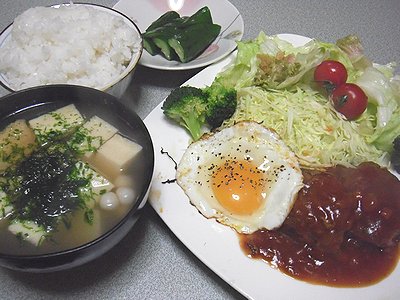 休肝日の晩ご飯。先日弁当に入れた煮込みハンバーグの残りを冷凍していたものがメイン。ソースがあまりなかったので、デミグラスソースの素とナポリタンの素でアレンジ。目玉焼きキャベツ、レタス、ブロッコリー、トマト高野豆腐の味噌汁(油揚げ、ブナピー、あおさ海苔)お昼は、アパートでナポリタンを食べました。市販のナポリタンソースにブロッコリー、菜花、ブナピーを入れて、ケチャップと塩胡椒。 ポチッとお願いします。 マラソンの代表が発表になりました。話題の公務員ランナー川内くんは残念でしたが、びわこ毎日の結果からすると仕方ないかな。選ばれた方頑張ってほしいです。仕事で人の前でしゃべることもたまにあるので、二女に「皆の前でしゃべる時の導入のネタに何か面白いのない?」と聞いたところ、二女「古いネタだけど、これは?」とネタをくれました。次の言葉をそれぞれ使って、短文を作りなさい。「あたかも」「どんより」「うってかわって」「冷蔵庫に牛乳、あたかも」「僕は、うどんよりそばが好きだ」「彼は、あの注射を打って変わってしまった」お年寄りや、真面目な人には受けないかな・・・