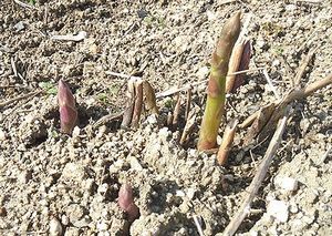 実家の嘉永菜園のアスパラガスが生えてきました。一番大きなものは霜でやられていますが、赤い芽が10本以上芽を出しています。昨年末に刈り込んだり、肥料をやったりした効果があったかな。週末が楽しみです。昨日の夜は、肉じゃががメイン。我が家の肉じゃがは、糸こんにゃくがたっぷり入ります。レタスサラダ(玉レタス、サニーレタス、水菜、三つ葉)紅白なますマグロの刺身じゃがいも、レタスサラダの材料、なますとすべて自家製。逆に贅沢かもしれないと嬉しい。 ポチッとお願いします。 読売と朝日がもめています。上限額が1,5億円の契約金を平均で6億円払ったとか。読売側は額を否定しないので事実なんでしょうが、「最高上限額は、上限ではなく目安」というはどうなんでしょう?いずれしても平均の生涯賃金が2億とかなのに、それに近い契約金とさらその4倍。すごい額だな~と呆れるばかりです。