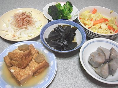 昨日の晩ご飯は、野菜中心。メインは、厚揚げの生姜煮かな。地味な料理だけど、生姜の香りがして好物です。久しぶりに作りました。里芋の煮物早煮昆布の煮物キャベツと人参の甘酢漬け茹でブロッコリー新玉葱のサラダ煮物が多いぞ・・・・・( ̄。 ̄ )ボソ...弁当は、豪華に「あわび炊き込みご飯」三重県の友達が送ってくれた炊き込みご飯の素で作りました。まあ、あわびと言ってもほんの少しで、筍ときのこがメインでした。貝の風味があって美味しかった。味付きご飯なので、おかずはあっさりと。ベーコンとブナピーの塩胡椒炒めだし巻き玉子ブロッコリー厚揚げの生姜煮里芋の煮物 ポチッとお願いします。 サッカーの五輪最終予選の最終戦が始まります。前回の大勝でかなり楽になったとは言え、勝負は水物。また、すっきり勝って本選への弾みをつけて欲しいです。注目はやはり清武かな。