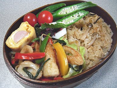 秋といえば炊き込みご飯のイメージがあります。私だけかな?とにかく、私はそういうイメージで、炊き込みご飯弁当。具は、鶏肉、しめじ、えのき、油揚げおかずは、野菜たっぷりの焼きそば。肉の代わりに竹輪です。にら、もやし、ピーマンをたっぷり。焼きそばは、1/4玉分もないかも、実際、見えないし。魚肉ソーセージを巻いただし巻き卵茹でオクラ、トマト、蒲鉾の梅紫蘇はさみ ポチッとお願いします。 先日、京阪神に旅行した長男のお土産。最初、見たときに「変わった箱でごちゃごちゃしているな」と思ったら、姉たちが落書きしたらしい。お暇な方はよんでみてください。バカでしょう。まあ、こんなことでも楽しむのはいいことだけど。きょうのにゃんこは、「呼んだ~」と見上げるあんこ。しっかり足で耳の裏をかいています。いかにも、ねこだな~と思う行動です。