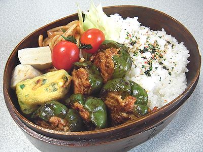 今日は休日出勤でしたが、昼過ぎに帰れてよかった。朝、布団を干してから出勤していたのに、いきなり曇ってきて心配でした。何とか、降る前に帰れたのでよかった。ピーマンの肉詰め弁当(スタッフドピーマンと呼ぶ方が好きだけど)簡単ピーマンの肉詰め ピーマンを半分に切り種をだし、内側に薄く小麦をふる。 ひき肉(今回は鶏)と玉ねぎのみじん切りにかるく塩胡椒をしてこね、ピーマンにつめる。 フライパンに油をぬり、ひき肉の面から軽く焦げ目がつくまで焼く。 裏返してピーマンの面を下にしたら、水をピーマンの半分ぐらいまで入れ蓋をして蒸し焼き ウスターソース、ケチャップ、オイスターソース、味醂を混ぜて、フライパンに入れてからめるニラ入りだし巻き卵高野豆腐の煮物スパゲッティナポリタントマト、キャベツ、混ぜ込み若布 ポチッとお願いします。 昨日の昼休みのこと(Oくんネタに使いました。)同僚が別の女性の同僚に私のブログの弁当の写真を見せながら会話「こんなん作ってきてほしい」「そうだ、弁当箱を買うから、渡して作ってもらおう」「1個500円で、3個」おいおい、勝手に弁当を作らせる計画を立てるなよ・・・「そうそう、それは負担だから、1個だけ余分に作ってもらって3人でくじ引きとか」折衷案まで出すか・・・そう言いながら、ちょっとだけ心が動かされたけど・・・・・( ̄。 ̄ )ボソ...今日のにゃんこ写真は、きなこ。素早くなりました。じっとしていたと思ったらいきなり動きます。