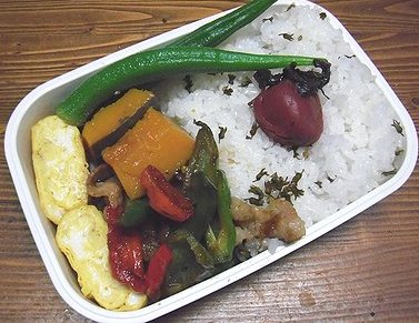 昨日の夜は、冷蔵庫を占拠している実家の茄子を使って、トマトソース煮を作りました。ついでに、大量にあるピーマンや玉ねぎも入れたらラタトゥイユ風になった。弁当は、豚のしょうが焼きがメインだけど、トマトソース煮の方が幅を利かせている感じ緑が綺麗なピーマンは、朝、別に焼きました。ネギ入りだし巻き卵ウィンナー星人柿 ポチッとお願いします。 お陰さまで風邪は、随分よくなりました。まだ、ボーっとしている感じはあるけど、熱はなし。週末にはすっきりするかな。我が家の家庭菜園は、種を買うものと自家採種するものがあります。茄子は、数年前に親類からもらったものを自家採種しています。他には、ゴーヤ、オクラ、かぼちゃ、瓜など。大きくなっても秋になっても、種が入らず柔らかいんです。で、今年も採種しました。茄子の種ってかなり小さいでしょう?来年も美味しい茄子がなりますように