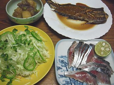 昨日の晩ご飯は、〆鯖がメインかな。〆鯖は大好物ですが、スーパーなどで売っている物は酢に漬けすぎて真っ白。ピンク色の〆鯖じゃないとダメ・・ということで久しぶりに自分で作りました。※作り方は、フリーページに記載していたけど画像のリンクが切れている。また、撮らなきゃ。1時間程度たっぷり降った塩でしめたあと、水で流して拭き取り昆布を入れた酢につけるだけ。ポリ袋を使うと酢の量が少なくて全部が浸かります。1時間ぐらいしかつけていないので表面が白いだけですが、半日ぐらがピンク色になるかな。ゲタ(舌平目)の煮付けキャベツのサラダ肉じゃが(何度か火を入れるうちに角が取れて煮崩れたいい感じに) ポチッとお願いします。 「アラサー女子に「僧職系男子」が大ブレーク中」とのニュース。話を聞いてもらうだけで、落ち着くとかありがたいとか。これだ!頭は問題ない。このまま出家するか・・・奥さん「まあ、次から次へとつまらんことを思いつくなあ・・(ノ_-;)ハア…」今日のにゃんこは、動画です。定番中の定番、猫じゃらしで遊んでみました。