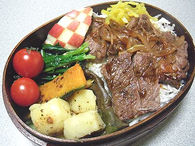 スーパーに行くと流れている食材のテーマソングがあります。「さかな、さかな、さかな~、さかなを食べると・・」というものや「お肉食べよう、お肉食べよう、肉、肉、肉、肉、肉食べたーい」という歌。※歌を知らない方はこちらをどうぞで、一昨日の夜、スーパーで聞いた直後に見た、ステーキに肉の安売り。これは、ステーキに決まりでしょう。ということで、ステーキ弁当です。(長いネタふりだ・・・・・・・( ̄。 ̄ )ボソ...)ソースは、塩胡椒と醤油、醤油麹、味醂、砂糖、酒の和風味。玉ねぎとエノキ茸もプラスご飯の上に千切りキャベツを敷いて、ステーキを乗せました。付け合せは、じゃが芋のイタリアンハーブソテー焼きかぼちゃのバターソテー。どちらも茹でてから焼いています。ほうれん草のお浸し(最初は、バターソテーの予定だったけど、和風も欲しかった)クロアチアりんご、トマト、沢庵 ポチッとお願いします。 奥さんの職場で起こった面白事件。その名も「ハンド○○事件」奥さんの同僚の女性(仮名Aさん)が、「嫁女にもらったけど、つるつるになるで」とチューブ入りのハンドクリームを出してきたので、奥さんと二人で塗ったそうな。手が真っ白になって擦り込んでも中々しみこまない。(Aさんはお昼に退社)ご飯を食べようとしてもお箸が滑る・・・で、手を洗いに行くと・・・真っ白になって泡立つ泡立つ。まさか、ひょっとして。翌日、出勤したAさんや同僚B,Cさんに、「あれ、ハンドクリーム?」と聞くとAさんもB、Cさんも「そうや。つるつるになる」と言い張る。奥さんが、ならチューブを見せてと言うとそこには、しっかり「ウォッシュ」の文字が!何のことはない「ハンドクリームならぬハンドソープ」だったとのこと。それは、しみこまずに泡立つはずだ。で、この話。奥さんが、私にするときに「聞いて、ハンドソープ事件」と言ってしゃべりだしました。いきなりネタのオチをしゃべってどうする。(この話は、ここがオチです・・・・・( ̄。 ̄ )ボソ...)追記スモーク塩って?とありましたので、ご紹介。「GABAN 味付塩コショースモーク風味」です。これは使える奴です。