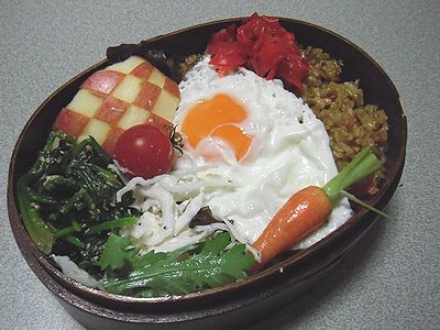 正しくは昨日の弁当。昨晩は家に帰るのが遅くそのまま眠ってしまった。弁当に半熟卵を持って行ける季節がやってきました。ということで、カレー炒飯目玉焼きのっけ弁当です。(長い・・・・)カレー炒飯は、先日作ったドライカレーを冷凍していたものので、ご飯と一緒に炒めただけ。キャベツのコールスローサラダ春菊入りほうれん草のお浸し、トマトクロアチアりんご、福神漬昨日の「日の出製麺」のうどん。ひと玉ならいくら?という質問がありましたが、ひと玉はなんと100円です。ひと玉ごとに100円増し。なので、味付けお揚げ(50円)を乗せたきつねうどんは150円です。有名店で美味しいだけじゃなくて安い。 ポチッとお願いします。 昨日は、11月22日「いい夫婦の日」TVでは、夫婦円満の秘訣を「我慢」と言う人がいました。うちは何だろう?夫婦は、妥協の産物だと思います。これは我慢と意味ではなくて、相手の意見を尊重する「思いやり」という意味です。うーん。いいことを言おうとして無理があるなあ・・・・・( ̄。 ̄ )ボソ...奥さんと二女は天橋立方面に日帰り旅行。四国は雨が上がって曇り空だけど、向こうはどうなんだろう?晴れ女と雨女の対決はどっちに軍配が上がるかな?