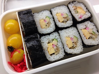 昨日の四十九日法要の巻き寿司が今日の弁当前回、傷んでいたもののリベンジです。今回は、昼から冷蔵庫に入れて、朝切って詰めたあと保冷剤たっぷり。なおかつ、職場で冷蔵庫に入れていました。ちょっと固いけど仕方ないかな。朝急いでいたので、おかずはなし。紅生姜とミニトマトを詰めただけ。でも、巻き寿司の味がしっかりついていたのでおかずなしで丁度よかった。 ポチッとお願いします。 台風1号が発生しています。うーん。はっきりいって雨も風もいりません。欲しいのは涼しさかな。