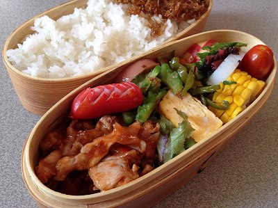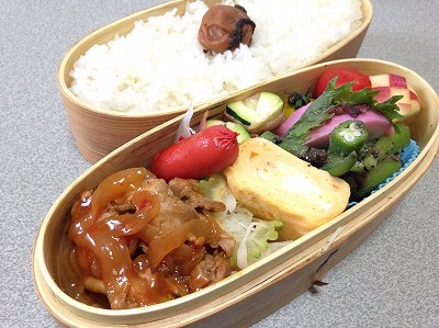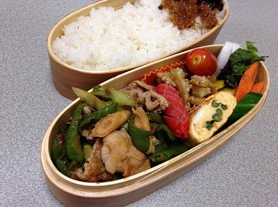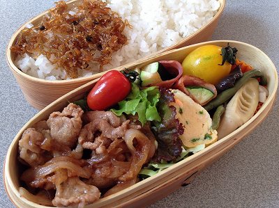 夏バテ防止に豚肉!ということで、豚の生姜焼き弁当です。(って年中使っているけど)生姜焼きは、玉ねぎ入りのちょいタレありタイプ。で、そのタレを受け止めるためにキャベツの千切りとレタスだし巻き卵煮物(真竹、人参、いんげん)真竹もこれでラストかな。ズッキーニのベーコン巻きミニトマトちりめん山椒 ポチッとお願いします。 明日は、健康診断の日。今日ぐらいは休肝日にしようかな。(たびたび休んでいるように思うでしょうが、最近は、10日に1回程度です。)