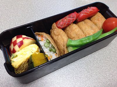 稲荷寿司と言えば、これと決めている白い弁当箱。高さがちょうどいいんです。探しても見当たらない。どうやら、先週末実家に忘れてきたよう(月曜は、弁当をやめたのでそのまま)茶色のわっぱは、茶色+茶色なのでやめました。稲荷寿司の具は、人参とインゲン豆とごま。弁当箱が小さくて、おかずがほとんど入らず。稲荷の方にも少し進出クロアチアりんごだし巻き卵南瓜のバターソテー茹でオクラ赤ウィンナーミニトマト ポチッとお願いします。 ゲームアプリ「ポケモンGo」がアメリカなどで大人気だそう。おかげで任天堂の株価も大幅上昇だとか。うちの子供たちは日本公開されたらすぐにダウンロードするだろうな。スマホ歩きでの事故が心配と思うのは私ぐらい?ご指摘いただいた、昨日の日記の最後穴子君・・・とくれば、磯野君じゃなくてフグ田くんでした。
