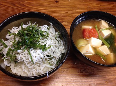 奥さんが、実家で食べて美味しかったという釜揚げしらす丼を再現義妹のレシピですが、うちの奥さんが再現するうえで分かったことがあります。よその家にはあって我が家では使わないというか存在自体がない調味料の存在です。ご飯の上に、青紫蘇を乗せて釜揚げしらすを乗せて、ごま油と調味料を少し振ります。さらに青紫蘇をもって出来上がり。ごま油の香りとしらすの塩分で美味しい。私は少しだけポン酢をかけましたが、なくても美味しい。味噌汁は、茄子、小松菜、豆腐、トマト ポチッとお願いします。 で、謎の調味料は、奥さんが職場で話をしたら「信じられん!味噌汁にも入れるで」とみんなに言われたとか。私は、社会人になって、なんにでも尋常ない量をかける同僚のせいで逆に一切かけなくなりました。たまたま、今回あったのもお歳暮かお中元でもらったものが棚の奥のほうに眠っていたもの(平成22年5月に封を切ったとメモ書きあり。大丈夫か?)なので、奥さんも子供たちも食べたことがありません。クイズに出しても子供たちもわからない謎の調味料わかったかな?答えは、「○の素」です。念のために言うと、かけるのを否定する訳ではなくて、かけすぎが嫌いなだけです。