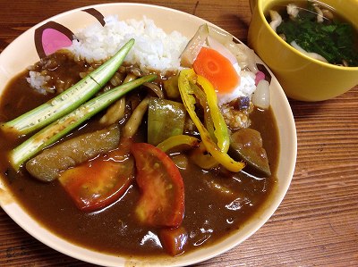 暑いです。最高気温は33度だとか。気温以上に日差しがきついのより暑く感じられます。今朝も家庭菜園で、ミニトマト、オクラ、茄子、ピーマン、モロヘイヤを収穫黄色のミニトマトは1本だけなのに30個以上収穫。週に100個以上収穫しているかな。今日の朝ごはんは、昨日の晩御飯に二女が作った鶏手羽元カレーを少しリメイク茄子とトマトの夏野菜カレーです。茄子を焼いてからしばらく煮込み、トマトを入れました。オクラと焼いたパプリカを乗せて、自家製のらっきょうとピクルスしめじとモロヘイヤのスープ ポチッとお願いします。 予想通り家族全員ポケモンGОをダウンロードして始めています。私も遅ればせながら今朝ダウンロード。家の近所を少しだけ歩いてピカチュウなど4匹をゲットこれは流行るのがわかる。でも、事故に合わないように気をつけないと。