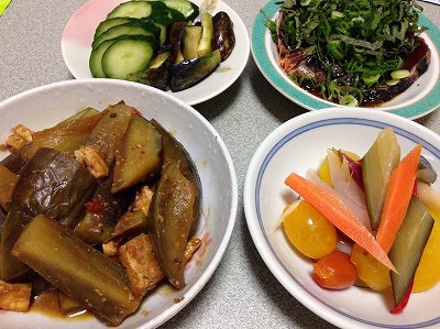 月曜は実家から出勤することが多いのでいつもよりも1時間早起きでも、さすがに夏場の弁当作りは危険なので、月曜は中止です。ということで、昨日の晩ご飯。夏野菜の揚げ浸しがメイン。中でもピーマンが一番好き。次が茄子かな。オクラは量が少ないので見合わせました。焼き茄子だし巻き卵小イカの茹でたもののどぐろの干物(長男夫婦からの父の日プレゼントのひとつ)胡瓜と若芽の酢の物ミニトマト ポチッとお願いします。