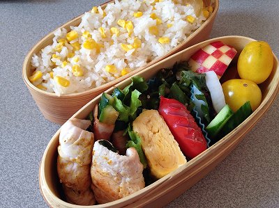 朝寝坊のきなこの記事は書くつもりでしたが時間がなくて断念。タイトルにだけ入れていたのを忘れていました。下の方に再度アップしています。オムライスと書くつもりが、ハートをくりぬいたので断念、ケチャになりました。職場の同僚から、再度、とうもこしを頂いたので今回も「とうもろこしご飯」を作りました。今回のは、前回よりもかなり甘いとのこと。2本のうち1本は茹でて味見したけど確かに甘い。ささみの紫蘇巻き(開いてしまって失敗)ズッキーニのベーコン巻きだし巻き卵ピーマンのきんぴら赤ウィンナー蒲鉾の梅紫蘇巻きミニトマトクロアチアりんご ポチッとお願いします。 久しぶりのにゃんこ写真は、朝寝坊するきなこ。きなこと違って早起きして、こっそり写りこんでいるあんこのおとぼけ顔が可愛い。健康診断の結果は、今のところ二重丸何と、体脂肪率が今までで一番低い19.4パーセントでした。今までは、大体24~5の軽度肥満。よくて22パーセント超身長も体重も昨年の検診とほぼ同じなので、これはかなり嬉しい。ウォーキング(スロージョギング)の成果かな。これからも頑張ろう!あと、血液データさえよければ花丸なんですが、いつも肝機能の数値がね・・・