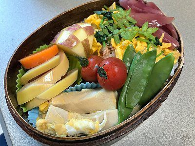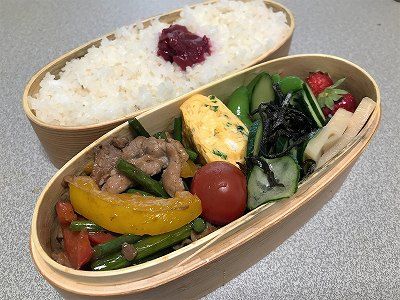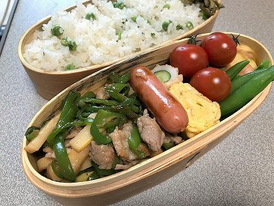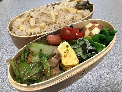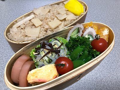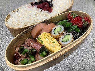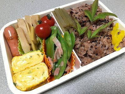今日は早出なので、弁当は、昨日の晩御飯の残りが中心赤飯オランダ絹さやのベーコン炒めだし巻き卵ウィンナー穂先筍のメンマ(これは後日時間があるときに)ミニトマト昨日の晩御飯は、平目の昆布締め(先日の刺身の時にチルド室で仕込んでおいたもの。ねっとりうまし)鰯の煮物(新鮮な鰯なのでうまし)オランダいんげんのベーコン炒めわらびの卵とじ山ふきの煮物 ポチッとお願いします。 ゴールデンウィークが終わりました。イベントも2つあってまあまあ、楽しかった。でも、今日から1週間。長くてつらいだろうな。