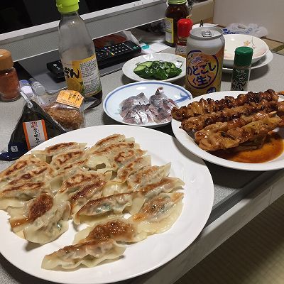 今日は、時間がなくて弁当を作らなかったので、お昼ご飯はアパートでちゃんぽんを食べました。インスタントのチャルメラちゃんぽん具は、キャベツ、人参、小松菜、絹さや。トッピングに、ゆで卵を乗せました。土曜日の晩御飯は、二女リクエストの鶏のから揚げがメイン付け合わせは、ポテトサラダ。ミニトマト、レタス平目の刺身ハリイカの刺身筍ご飯 ポチッとお願いします。 日曜の昼は、法事の会席膳夜は、法事に帰ってきていた長男のリクエストで焼き鳥パーティ長女彼、二女彼にも集合をかけて、総勢8人で焼き鳥。賑やかでした。