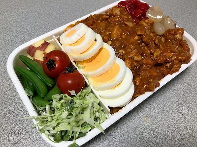 久しぶりに作ったドライカレー弁当鶏胸ひき肉、玉ねぎ、人参、筍、クミン、ナツメグで炒め、トマト缶と水、ローリエで煮込みます。カレールー、カレーパウダーを入れて仕上げます。ゆで卵らっきょう、福神漬けキャベツのコールスロースナップエンドウミニトマトクロアチアりんご ポチッとお願いします。 新しい週が始まりました。今週末には健康診断が待っています。今晩から休肝日にするか?いや、前日だけにするか?優柔不断な私は、こんなつまらないことでグジグジと悩んでいます。