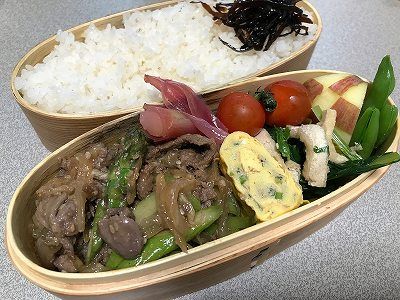 我が家のアスパラは、絶好調とはいかないけど、少しだけ収穫できています。アスパラと言えば一番に思い浮かぶのは、アスパラベーコンです。アスパラベーコン巻きだし巻き卵ちくわ胡瓜ベビーハムスナップエンドウの塩昆布和えいちご梅干し ポチッとお願いします。 穂先筍の下のほうでメンマ(シナチク?)を作りました。茹でた穂先筍を繊維に沿って細切りにして、ごま油で炒め、唐辛子、醤油、砂糖、味醂で炒め煮歯ごたえとピリッとした辛味がたまりません。やはり、今日1日長かった。1週間が思いやられる。