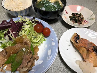 休肝日3日目。ようやく検診の日を迎えました。小さな目標だけど、やはり達成すれば嬉しい。で、血液検査の結果がよければ二重丸なんですが。今週は、早朝40分。夜もどんなに遅くなっても30分から1時間のスロージョギングをしていました。頼むぞ!再検査はいやだ。(なら、もっと前。というか普段から節制しろってか・・)昨日の休肝日の晩御飯は、いたって普通の晩御飯休肝日の定番のカレーもパスタも食べたので悩んだ挙句、普通のメニューでも、これが私にとっては休肝日のメニュー豚の生姜焼きとサラダ。焼き鮭。小松菜と油揚げの味噌汁。間引き赤蕪の浅漬けうん?普通のご飯だからお酒を飲みたくなるのではないか?と思う方も多いでしょうが、違います。私にとって、豚の生姜焼きも焼き鮭もご飯のおかず。弁当に入れることはあってもお酒のつまみの意識はありません。賛同者はいないかな?ということで無事に完食。無事に達成 ポチッとお願いします。 今日から3日間のアルコール解禁祭りが怖い(笑)飲みすぎないようにしなきゃ。