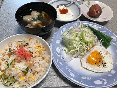 朝、お米を炊き忘れた時は、冷凍のご飯があるのが助かる。レンチンの散らし寿司の朝ごはんです。夜、米を研いで、冷蔵庫のチルド室で1時間ほど冷やしてから炊飯器予約炊飯しますが、セット忘れ。冷凍していた散らし寿司をレンジで温めて、錦糸卵と青柚子の皮を千切りにして混ぜ込みました。目玉焼きとサラダ麩となめこの吸い物。青いのは柚子皮ヨーグルトと杏ジャムいちじく冷凍のお寿司なんてと思う方がいらっしゃるかも知れませんが、温めることで酢のにおいが柔らかく立って美味しいのです。是非、お試しを。まあ、急速炊飯してもよかったんですけど。 ポチッとお願いします。 最近、仕事は長いけど休みはあっという間に終わる気がする。今週も始まりました。気力を奮い立たせて頑張ろう。(大袈裟か・・・)