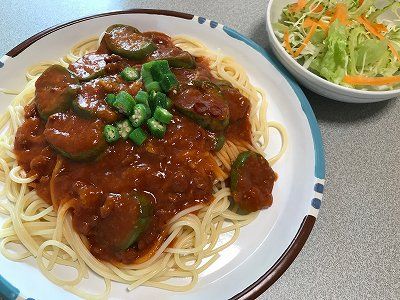 ミートソーススパゲッティ。市販のソースにみどり茄子と唐辛子とケチャップを加えてアレンジオクラをトッピングしてしてやったりと思ったけど、よく考えたら冷蔵庫に名残のバジルがあった。うーん、バジルの香りを追加して食べたかったな。サラダ(キャベツ、レタス、ゴーヤ、人参) ポチッとお願いします。 どうにも、10月ころからしばらく、仕事が忙しくなりそうな予感そろそろ弁当を再開させないと作り方を忘れてしまうと思ったけど、どうしよう。