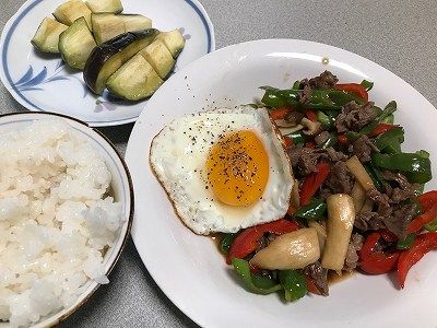 台風で荒れた元の家庭菜園。茄子もオクラも終了しました。今年は不作で小ぶりだったピーマンがほんの少しですが収穫できて、今年の夏野菜は終了そんなピーマンを使ってチンジャオロース今回のチンジャオロースは、豚肉ではなくて牛肉で作りました。ブロ友のmasakohimeさんが、筍の代わりにエリンギを使っているのをみて真似っこ味付けは、オイスターソース、醤油、味醂、砂糖、胡椒、創味シャンタン目玉焼き(目玉焼きを乗せるのが最近の定番?)茄子の糠漬け(これもそろそろ終わり。市販の茄子を買うかな?蕪の糠漬けまでたどり着いて糠床は冬眠予定) ポチッとお願いします。 母が高齢になったため、家庭菜園の移転を計画以前の菜園は、実家から自転車で10分近くかかるため、半分ぐらいの距離の水田に移転中父も亡くなり、母も高齢のため米作りは数年前から行っていないので、水田の一部を地上げ4月に業者さんに依頼しました。5月の夏野菜の植え付けには間に合うかと思ったのですが、田植えで忙しいようで間に合わず。秋冬野菜の時期にはと思ったのですが、一向に作業の気配がなく母が何度目かの催促に行き、「冬野菜が間に合わない」と掛け合ったら、ようやく少しだけ進捗しかし、これもここまできて2週間放置業を煮やして平らになったところに、種まきをしました。作業の邪魔になるといっても知りません。というか、半分はできているのか?来週から仕事が忙しくなりそうなので、菜園仕事に帰れるかどうかも不安ですし、困ったもんだ。