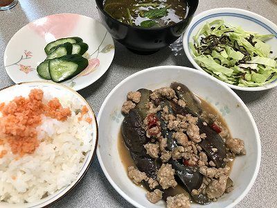 名残の茄子(と言っても、実家の茄子は終わったので買ったものだけど)を使ったメニュー茄子の肉みそ炒め。今年はあまり作らなかったかな。鶏ひき肉を炒めて、味噌、醤油、砂糖、唐辛子、味醂で味付け鮭フレーク糠漬けキャベツの塩昆布和えアオサの味噌汁 ポチッとお願いします。 大混乱の衆議院選挙アメリカの銃乱射事件体操の内村選手の棄権うーん、明るいニュースはないなあ。ネタもないけど・・・ああ