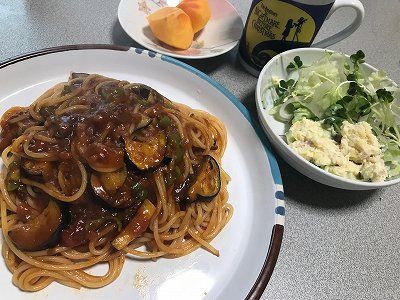 家庭菜園の茄子は終わったけど、近所の野菜激安スーパーではまだまだ茄子は激安中そんな茄子を使って茄子のミートソーススパゲッティ時間がないのでミートソースは市販です。一口大に切ったの茄子をオリーブオイルで炒めたら、切った青唐辛子とミートソースを入れます。ケチャップと黒胡椒を少し入れ、茹でたスパゲッティを少しの茹で汁と一緒に入れて水分を飛ばします。コクが出て美味しいソースに麺も茹で加減バッチリでもっちりして美味しかった。レタスサラダとポテトサラダ柿半分(残りの半分は朝食べています) ポチッとお願いします。 暗い話題ですが、神戸製鋼のデータ偽装に日産の不正検査高品質を売り物にしていた物づくり大国の日本はどうなるんだろう?折角、景気が上向いているのにこのままではジリ貧の国にならないかと心配です。