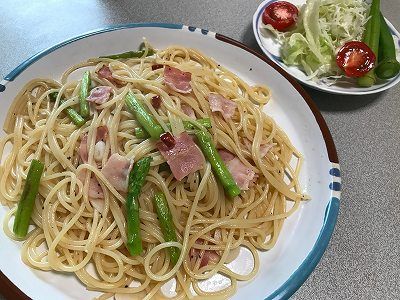 長女彼からアスパラガスを頂いたので、スパゲッティに使うことにしました。アスパラベーコンのスパゲッティん?アスパラベーコンって、アスパラガスをベーコンで巻いたもののような気がするけど、まあいいか。ニンニクと唐辛子をオリーブオイルでゆっくりと炒めて、アスパラとベーコンを炒めます。茹でたスパゲッティを入れて、ゆで汁を入れてさらに炒めて、黒胡椒と塩で味付けサラダ ポチッとお願いします。 久しぶりににゃんこ写真。まあ、珍しくもない眠るきなこです。本当によく眠ります。夜中の3時の運動会はありません。(猫は本来夜行性なので夜中に起きるらしい)ノーベル賞が大好きな日本人今年も日本人の受賞があるかどうかで盛り上がっていました。文学賞のカズオ・イシグロ氏はイギリス人だけど、日本人にカウントされるとかヨーロッパは、戦争で国が入り乱れた歴史があるので、出身地主義をとるからだとか。本当かな?