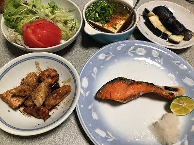台風は通り過ぎました。香川は雨はひどかったものの暴風域に入ることはありませんでした。関東はまさに通勤ラッシュの時間帯に直撃。どうか被害がありませんように。昨日は、休肝日というか、11時過ぎにインスタントラーメンで済ませました。少し前の晩御飯。焼き鮭がメインです。国産の紅鮭が美味しそうだったので購入したものささ身の焼き鳥はやわらかです。山椒をたっぷりふって茄子の糠漬け大阪湯豆腐サラダ(キャベツ、レタス、赤玉ねぎ、貝割れ大根、トマト) ポチッとお願いします。 ボクシングのミドル級で村田選手がTKO勝ちしたとのこと。生中継で見られなかったのは残念だけど、とにかく勝ってよかったです。ひょっとして前回と同じように消極的になったらと思っていたけど、積極的に攻めたみたいですね。防衛回数を重ねて、スター選手との統一選をやってくれると嬉しいな。