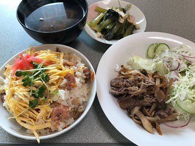 秋といえば炊き込みご飯の季節。という勝手な思い込みがあります。先日のたこ飯に続いて、またも炊き込みご飯を作りました。好きなんです。味付きご飯なので、おかずはあっさっり。というかメインを作りませんでした。小さいおかずを並べてみました。目指し大根の間引き菜のお浸しだし巻き卵里芋と人参の煮物胡瓜の糠漬け味噌汁(油揚げとしめじ)サラダ(キャベツ、レタス、赤玉ねぎ、胡瓜、ミニトマト) ポチッとお願いします。 まったりする猫動画 → 住職と4匹の猫の朝ごはんこんな飼い方もいいですね。