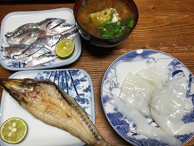 仕事が終わるのが遅かった昨日の晩御飯は、いつもの土曜日と違って長女と長女彼が一緒でした。(いつもは、二女彼が一緒。奥さんと二女はいました。)なんでも地元の祭りで忙しい飲食店のアルバイトを頼まれているとか。忙しいだろうな。でも、二女が太刀魚の塩焼きを食べていないと言ったら朝早く出かけて釣ってきたそうな。ということで、晩御飯のメインは太刀魚の塩焼き太刀魚の酢洗い(細く切って軽く塩をして酢で洗って雑味をとり、酢橘と醤油で食べます)ハリイカの刺身鶏のから揚げお昼ご飯は、マルちゃん正麺で作った台湾ラーメン風?鶏ひき肉を唐辛子と一緒炒めて、醤油、味醂、砂糖で甘辛く味付けラーメンが煮えるちょっと前に、もやしとニラ、唐辛子を入れてます。スープを入れて味付きの鶏ひき肉を乗せて完成。辛くってウマウマ。塩ラーメンで作った方がさらに良かったかな。 ポチッとお願いします。 暑さが戻ってきました。今日は、最高気温27度、最低気温が19度。明後日は最低気温が20度だそう。まあ、寒い冬が一気にくるよりはいいけど。あ