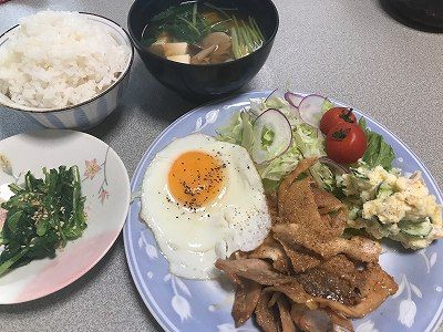 三重県に住む友達からお中元に熊野地鶏をもらいました。冷凍庫で眠っていたけど、そろそろK点が近づいてきたので消費メニュー(忘れていた)しゃぶしゃぶ用なのか、薄切りの鶏肉(これも珍しい。)だったけど、焼き鳥にしました。フライパンで焼いて、味付けは醤油、味醂、砂糖、胡椒。粉山椒をたっぷりふります。キャベツレタスサラダとミニトマトポテトサラダ目玉焼き大根葉の間引き菜味噌汁(しめじ、豆腐、三つ葉)昨日は、休肝日にしたのでラーメン。薄切り鶏肉がまだ残っていたので焼き鳥にしてトッピングその名も焼き鳥ラーメン(そのまんまか~い)サラダもお昼と同じ ポチッとお願いします。 連日の雨。それに気温も下がって、最高気温は17度。一気に冬が近づいてきました。秋は?