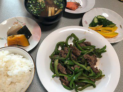野菜激安スーパーで柔らかそうなピーマンが安かったので購入牛肉のチンジャオロースにしました。味付けは、オイスターソース、醤油、砂糖、味醂、胡椒、創味シャンタン南瓜と里芋の煮物柿の木茸と油揚げの味噌汁糠漬け紅鮭の焼いたもの(朝ごはんに半分食べた残り。朝食べてしまうには大きかった)久しぶりに作った白和え。今回は、大根葉と柿の白和えです。人参葉やほうれん草で作ることが多いけど、今回は、実家の大根の間引き菜を使いました。味付けは、白みそ、砂糖、白だしです。 ポチッとお願いします。 今晩は、退職した上司達と食事会。おフランスでございます。