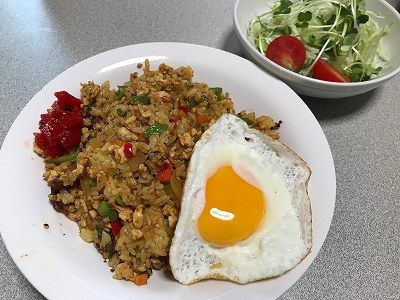 そう言えば、ガパオライスは何度か作ったけど、カレー炒飯は最近食べてないと思い、作りました。具は、鶏ひき肉、玉ねぎ、人参、ピーマン、赤ピーマン具を塩胡椒とクミンパウダーで炒めて、カレールーとカレーパウダーで味付け。目玉焼き乗せ(自分で言うのもなんだけど、好きですね。味よりもこの画が)サラダ晩御飯は、麻婆豆腐がメイン。でも、実際に美味しかったのはカマスの干物干物で一番好きなのはカマスです。小松菜と油揚げの煮物。こういう食べ物がほっこりして好き。(年ですね) ポチッとお願いします。 昨日は、中秋の名月。珍しく10月でした。お月見ができるかなと思ったけど、雲が多くて見られなかった。十六夜(いざよい)という響きの方が十五夜よりも好きです。