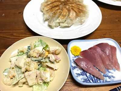 昨日の晩御飯は、次女リクエストのマカロニサラダがメイン(サラダがメインって・・)我が家のマカロニサラダは、奥さんのこだわりがあります。胡瓜は少し厚めで塩もみはしない。リンゴは、フジ系の硬い奴他の具材は、レタス、シーチキン、茹で卵焼き餃子びんちょう鮪の刺身 ポチッとお願いします。 はしかで全世界の死者が20万人超えとのニュース予防接種は、やはり大事うちの孫ちゃんも月齢に応じた予防接種をしています。ゲームの天穂のサクナヒメという稲作をやるアクションゲームが売り切れとのニュースも気になる。
