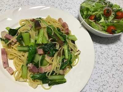 先週末、親戚で叔父さんの3回忌法要があり、出席していた別の親戚から原木椎茸をもらいました。休肝日にした昨日の夜は、そんな原木椎茸を使ったパスタベーコンと食べて菜と一緒に炒めました。ニンニク、唐辛子、ベーコン、食べて菜、椎茸をオリーブオイルで炒めます。茹でたパスタと茹で汁を入れ、胡椒、白だしで味付け。仕上げにバターを少し入れました。バター醤油のイメージです。椎茸に合うかな。サラダ(レタス、キャベツ、春菊、水菜、ラディッシュ、赤玉ねぎ、ミニトマト) ポチッとお願いします。
