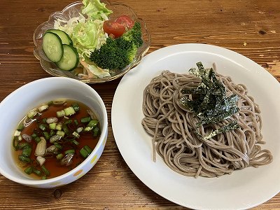 暑いので冷たい麺が続きます。今回はざる蕎麦。いや皿そばか。海苔を散らして、汁にはわけぎとわさびサラダ(キャベツ、レタス、人参、胡瓜、ブロッコリー、ミニトマト) ポチッとお願いします。 善通寺の自衛隊祭りで飛ぶはずだったブルーインパルス同時間帯に善通寺の病院にドクターヘリが着陸するので上空待機中に燃料切れとなって中止だとか。昨日の予行演習での飛行を見られた方はラッキーかな。奥さんの親から誘われていたけど、行かなくてよかった。