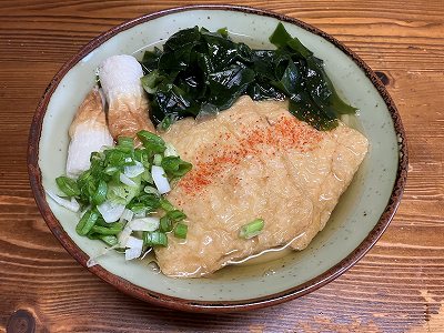 うどん2種わかめきつねうどん。贅沢にも2枚乗せ思いのほか、寒かったので湯だめうどん ポチッとお願いします。