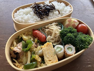 豚肉が残っていたのとキャベツ、ピーマンがあったので回鍋肉弁当です。だし巻き玉子赤ウィンナー切干大根煮竹輪胡瓜ブロッコリークロアチアりんご、ミニトマト昆布の佃煮 ポチッとお願いします。 大阪万博が開幕しました。子供たち家族は6月末に行く計画を立てているよう。うちはどうする?いかないかな。人込み苦手だし。