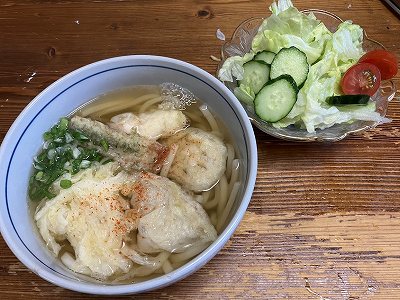 月曜日に産直市で筍を買ってあく抜き、翌日から2日間煮込んでおきました。一昨日の夜は、筍と新玉ねぎがメインの天ぷらでした。作りすぎたぐらい揚げたので、昨日の昼は天ぷらうどん手前左から新玉ねぎ筍レンコンささ身竹輪磯部揚げサラダ(レタス、胡瓜、ミニトマト) ポチッとお願いします。 これは予約投稿です。予定通り夜出発して、仮眠、車を停めてバスで移動しているころで、歩き始めは7時40分ごろかな。いい天気というか暑いぐらいの予報なので頑張って歩きます。
