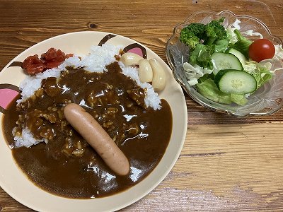 たまに食べたくなるカレーライス。好きなので週1でもいいぐらい。ブロッコリーをトッピングしました。らきょう、福神漬けサラダ(キャベツ、レタス、人参、胡瓜、ミニトマト) ポチッとお願いします。 トランプ大統領、「これで株が大幅上昇」とか言っていましたが、NY株急落で史上3番目の下げ幅だとか。大河ドラマで田沼意次が言っていた「思う通りにならない」のとおりですね。変な関税やめろ!!