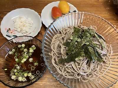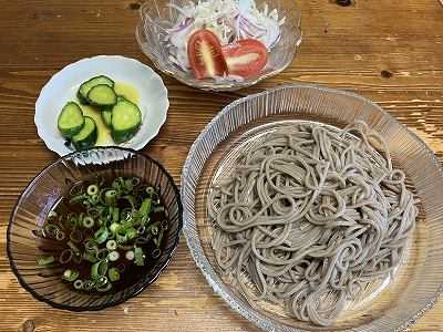 暑いので冷たい麺。今回はざる蕎麦です。胡瓜、今回は辛子漬けを作りました。箸休めに丁度いい。サラダ(キャベツ、赤玉ねぎ、トマト) ポチッとお願いします。