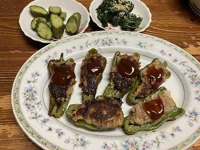 家庭菜園のピーマンの消費メニュー。ピーマンの肉詰めです。別名スタッフドピーマンこれを作っていると狩野英孝の初期のネタ「スタッフ~スタッフ~」というのを思い出します。モロヘイヤのお浸し胡瓜の糠漬け。少し長めに漬けましたが、まだまだ酸味は出ていないな。ポチッとお願いします。