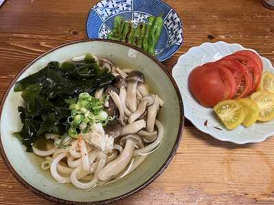 暑いので冷たいうどん。冷かけうどんに若布としめじを乗せました。しめじは、先にだし汁で煮てから冷やしています。トマトスライス焼きしし唐のポン酢浸し晩御飯せせりのレモン塩焼きというのが売っていたので、キャベツと一緒に炒めました。レモンの香りが美味しい。メークインを薄切りして茹でてベーコンと炒め、塩胡椒で味付けトマトスライスポチッとお願いします。 今朝、家庭菜園の様子を見に行きましたが、見違えるほど野菜が元気になっていました。よかった。