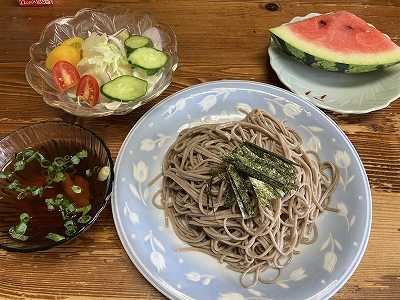 冷たい麺で、今回はざる蕎麦サラダ(キャベツ、レタス、赤玉ねぎ、胡瓜、ミニトマト)スイカ家庭菜園の胡瓜が沢山あるので、胡瓜のキューちゃんならぬ干し胡瓜のパリパリ漬けを作りました。胡瓜を小口切りにして、天日に4,5時間干します。ポリ袋に入れて、醤油とお酢を1対1の割合で入れて冷蔵庫で1日置きます。好みで、昆布、唐辛子、生姜の千切りを入れます。唐辛子は入れすぎないこと今回は、胡瓜2本で醤油、酢は大さじ2杯ずつでした。胡瓜から水分が出て時間が経っても塩辛くなりません。パリパリした食感が旨しポチッとお願いします。