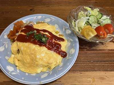 卵の買い置きが沢山残っていたので、卵2個を使ってふわとろオムライスを作りました。オムレツを作って真ん中を切るというタンポポオムライスを作る自信はないので、普通のふわとろです。卵焼きをひっくり返さずに、表面が少し柔らかい状態でそのままご飯の上に移動させます。サラダ(レタス、胡瓜、赤玉ねぎ、ミニトマト)ポチッとお願いします。